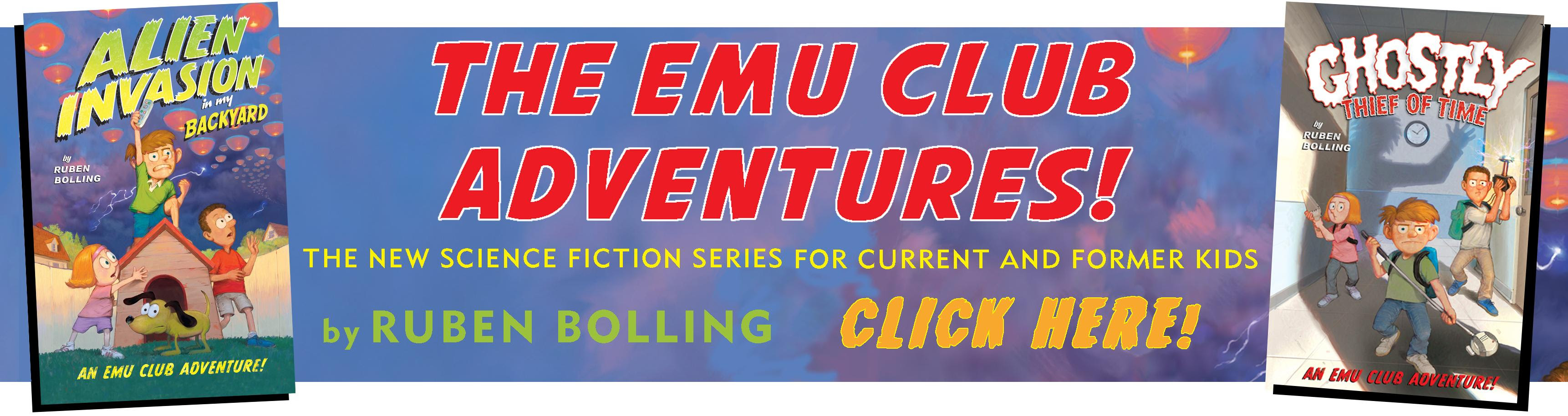 GET Ruben Bolling’s new hit book series for kids, The EMU Club Adventures. (”Filled with wild twists and funny dialogue” -Publishers Weekly) Book One here. Book Two here.